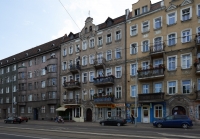 1 pobranie 447 odsłon 5.62 średnia ocen Poprzednie i następne zdjęcia Neo[EZN] Obiekty widoczne na zdjęciu ul. Trzebnicka więcej zdjęć (566) Dawniej: Trebnitzer Strasse Ulica Trzebnicka we Wrocławiu – jedna z arterii wylotowych, prowadzących od Starego Miasta na północ, w kierunku Trzebnicy. Zaczyna się na placu św. Macieja, a kończy na mostach Trzebnickich przez Starą Odrę. Przebiega przez osiedle Kleczków (część dawnego Przedmieścia Odrzańskiego). Przedłużeniem ulicy Trzebnickiej za mostami Trzebnickimi jest ul. Żmigrodzka, przecinająca Karłowice i Poświętne. Długość ulicy wynosi 1,1 km; w połowie długości, przy pl. Powstańców Wielkopolskich, przecina ją wiadukt kolejowy. Południowy odcinek jezdni ulicy Trzebnickiej (do pl. Powstańców Wielkopolskich) jest stosunkowo wąski (po jednym pasie ruchu w obu kierunkach, bez tramwaju); odcinek północny jest szerszy i mieści także tory tramwajowe. W przeszłości część dzisiejszej ulicy Trzebnickiej (od pl. Powstańców Wielkopolskich do mostów Trzebnickich) stanowiła fragment Szosy Trzebnickiej (niem. Trebnitzer Chausee). Dawna rogatka miejska (Trebnitzer Barriere) zlokalizowana była w pobliżu skrzyżowania z ul. Ołbińską. Po roku 1868, w związku z budową linii kolejowej Prawego Brzegu Odry i korekcie sieci ulicznej (związanej także z wytyczonym w 1873 na dawnym Polu Maciejowym – Mathiasfeld – placem św. Macieja) przebieg nowo utworzonej Trebnitzerstraße przybrał współczesny kształt ulicy Trzebnickiej. Wybudowane wzdłuż ulicy budynki w większości powstały przed rokiem 1910 i podczas oblężenia Festung Breslau w 1945 prawie wszystkie przetrwały w stopniu, pozwalającym ich odbudowę; jest to jedna z nielicznych ulic miasta, których stuletnia zabudowa zachowała się w tak dużym stopniu do XXI wieku. Prócz kamienic mieszkalnych – w większości 5- i 6-kondygnacyjnych, często ze zlokalizowanymi na parterze lub w suterenie sklepami i małymi zakładami usługowymi – wzdłuż ulicy Trzebnickiej wybudowano m.in. w latach 1894-1895 gmach przytułku Fundacji Claasseena (wg projektu Richarda Plüddemanna, pod numerem 25-27, pomiędzy ul. św. Wincentego a Ołbińską, dziś szpital MSW), szkołę (1905-1908, projekt R. Plüddemanna i Ch. Cabanisa, pod numerem 42-44, przy skrzyżowaniu z ul. Dębickiego i z ul. Kleczkowską, dziś Kolegium Nauczycielskie), a także gazownię miejską (nr 35, projekt i budowa – rok 1881 i następne, dziś Zakład Energetyczny) i jej budynek administracyjny (nr 33, rok 1938, dziś urząd skarbowy dzielnicy Psie Pole). Źródło: Autorzy: Licencja: CC-BY-SA 3.0 Trzebnicka 82 więcej zdjęć (5) |