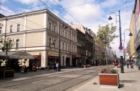1 pobranie 382 odsłony 5.26 średnia ocen Poprzednie i następne zdjęcia ireneusz1966 Obiekty widoczne na zdjęciu ul. 3 Maja więcej zdjęć (1071) Dawniej: Industriestrasse, Grundmannstrasse Ulica została wytyczona w 1856 jako łącznik pomiędzy placem Wolności a Rynkiem i otrzymała nazwę Industriestraße. Polscy mieszkańcy miasta nazywali ją ulicą Pańską ze względu na umiejscowienie przy niej eleganckich sklepów i mieszkań lub ulicą Główną. 24 października 1867 Rada Miejska na wniosek magistratu podjęła decyzję o przemianowaniu jej na Grundmannstraße. Było to zjawiskiem wyjątkowym, gdyż Friedrich Grundmann zmarł dwadzieścia lat później − 30 lipca 1887. Świadczyło to o jego zasługach dla miasta. W 1871 miasto zakupiło dom nr 9 przy Grundmannstraße na cel tymczasowej siedziby magistratu i radnych miejskich. Koszt zakupu wyniósł 21 500 talarów. Wcześniej radni wynajmowali pomieszczenia w domu Immerwartha (również przy tej ulicy). W 1908 na ulicy poprowadzono drugi tor tramwajowy. Od 1907 pod numerem 11 funkcjonowało kino Grand-Kinematograf. W dwudziestoleciu międzywojennym pod numerem 9 funkcjonowała centrala Banku Śląskiego − Banque de Silésie SA i spółka akcyjna "Śląskie Zakłady Elektryczne" (do 1939). W latach 1861/62 na rogu ulic Industriestraße i Schillerstraße (ul. J. Słowackiego) wybudowano pierwszą katowicką synagogę według projektu Ignatza Grünfelda. Do 1939 pod numerem 3 zlokalizowany był największy damski i dziecięcy dom konfekcyjny w mieście − Baender. Swoją siedzibę w nim posiadała firma Ocularium (oferująca artykuły fotograficzne i optyczne) oraz sklep Pedicura (oferujący obuwie oraz usługi związane z pielęgnacją nóg). Pod numerem 2 istniał skład win i wódek B. Hartmanna i firmy Klonowski i Ska oraz biuro wynajmu filmu "Espefilm", a do 1910 − fabryka likierów Ewalda Puschkewitza. Pod numerem 6 w 1862 założono Dom Obuwia, prowadzony przez F. Kochmana, a pod numerem 5 swoją hurtownię towarów kolonialnych posiadał L. Broński. W budynku nr 31 istniał do 1939 Katowicki Dom Licytacyjny B. Cubera[11], a pod nr 32 − sklep Moritza Nebla. Do 1939 przy ulicy istniały konsulaty; francuski i włoski pod numerem 23, a brytyjski pod numerem 33. Ulica 3 Maja została wspomniana w książce Kazimierza Gołby "Wieża spadochronowa", opowiadającej o bohaterskiej obronie Katowic w czasie kampanii wrześniowej przez harcerzy. |