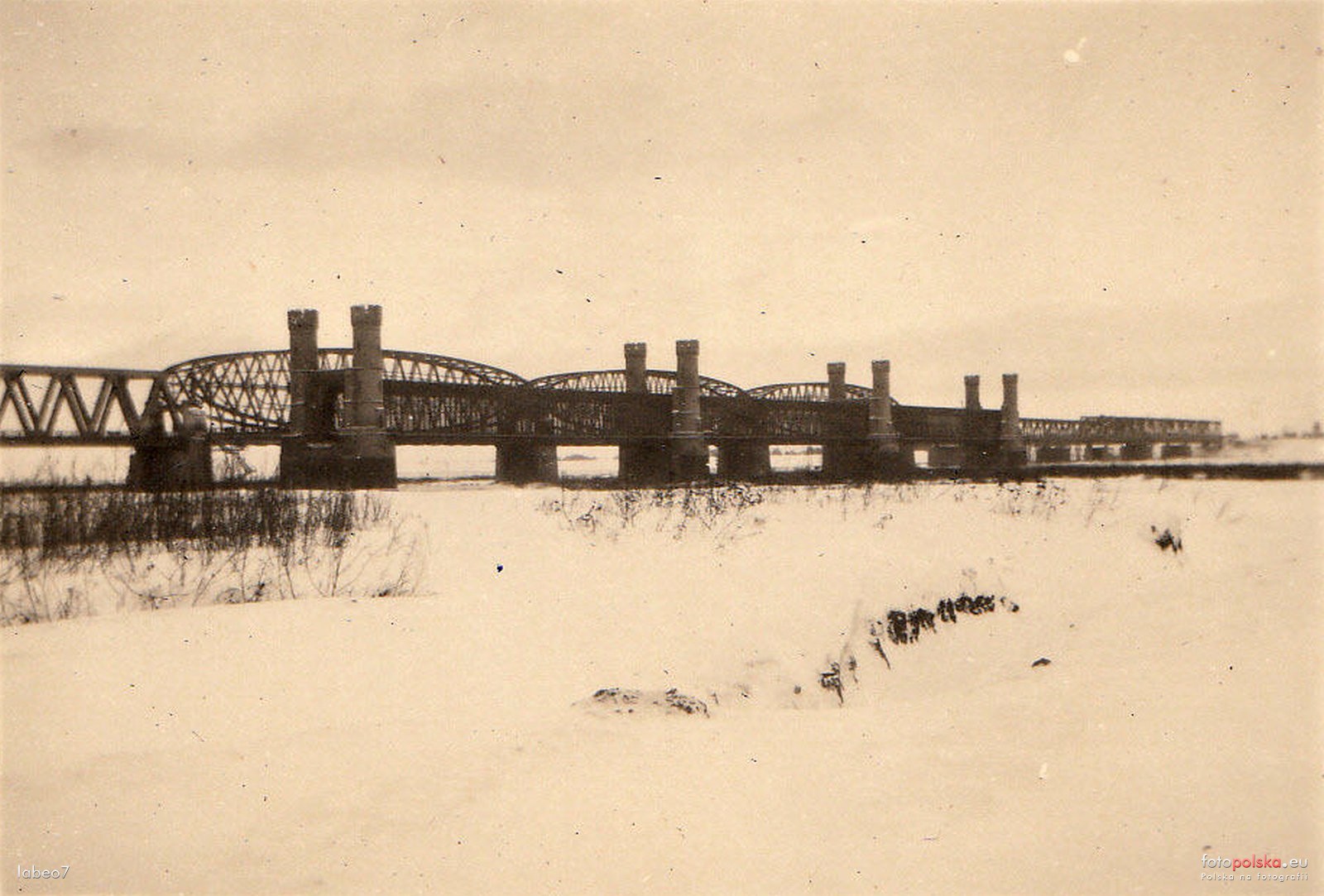 Zdjęcie zdecydowanie najwcześniej z 1940 - brak przeseł w moście drogowym, brak bram wjazdowych od strony Lisewa (z prawej), z lewej widoczny element odbudowanej konstrukcji mostu kolejowego i brak wcześniejszej konstrukcji tymczasowej postawionej krótko po zniszczeniu mostu w 1939 r..