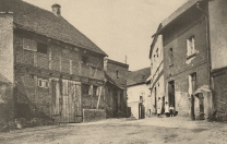 Lata 1910-1914 , Tylny Zaułek - najprawdopodobniej współcześnie jest to zaułek u zbiegu uliczek: Podmurnej i Staroszkolnej. W głębi widoczna baszta obronna usytuowana w ciągu murów miejskich od zachodniej strony miasta.Skomentuj zdjęcie