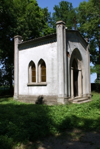 0 pobrań 878 odsłon 5.53 średnia ocen Poprzednie i następne zdjęcia kakaa Obiekty widoczne na zdjęciu Cmentarz więcej zdjęć (14) Cmentarz ewangelicki położony na wsch. od majątku Jarcewo,. Założony na plan regularnego czworoboku, granice obsadzone wysoką zielenią i żywopłotem grabowym, w centrum zachowany 400-letni dąb . W części pn. neogotycka kaplica grobowa rodziny Kreich , ówczesnych właścicieli Jarcewa i Czartołomia, z pochówkami: Maria +1914, Carl +1933. Po 1945 r. podzielony na pn. część ewangelicką z kaplicą oraz część pd. rzymskokatolicką, gdzie nowe pochówki. Zachowane historyczne nagrobki m.in. najstarszy z 1867 r. + Joseph Gigch. Obecnie uporządkowany cały teren i dawne mogiły. Neogotycka kaplica wybudowana została pod koniec XIX w przez rodzinę Kreich, właścicieli pobliskich majątków w Czartołomiu i Jarcewie. Posadowiona na terenie dawnego cmentarza ewangelickiego, obecnie w połowie rzymskokatolickiego, murowana i otynkowana. Bryła parterowa nakryta dachem dwuspadowym, z trójkątnymi szczytami, w narożach smukle wieżyczki. Kompozycja elewacji z użyciem form neogotyckich w formie ostrołukowych okien i maswerkowych blend, a także gzymsu i gryzu arkadkowego pod okapem. |