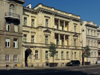 Niemiecki Instytut Historyczny więcej zdjęć (14) Zbudowano: 1877-78 Dawniej: Pałac Karnickich Pałac Karnickich - mieszczący się w Alejach Ujazdowskich 39 neorenesansowy pałac zaprojektowany przez Józefa Hussa dla rodziny rosyjskiego senatora, Jana Karnickiego. Wzniesiony został w latach 1877-78, ma dwa piętra, zwieńczony jest attyką. W czasie II wojny światowej i powstania warszawskiego budynek nie uległ żadnym istotnym zmianom lub uszkodzeniom. Obecnie mieści siedzibę Niemieckiego Instytutu Historycznego. ul. Aleje Ujazdowskie więcej zdjęć (4527) Dawniej: Lindenallee, Siegesstrasse, Aleja Stalina, Aleja Belwederska W latach 1724-1731 z polecenia króla Augusta II, wytyczona została tzw. Droga Kalwaryjska prowadząca od dzisiejszego Placu Trzech Krzyży do Grobu Chrystusa niedaleko Zamku Ujazdowskiego, stając się zaczątkiem dzisiejszych Alej. Było to założenie ostentacyjnie dewocyjne, wzdłuż drogi krzyżowej wzniesiono 28 kaplic. Religijna wymowa tego szlaku uległa stopniowemu zatarciu, tak, że w 1766 był już częścią Traktu Królewskiego jako Aleja Belwederska, prowadząca do Belwederu. W roku 1827 powstała Dolina Szwajcarska, szybko stając się popularnym miejscem spotkań i imprez masowych. W 1857 przy ulicy zapalono pierwsze latarnie gazowe, a w 1879 rozpoczęto kanalizowanie. Druga połowa XIX wieku to początek zabudowy willowej i pałacowej w Alejach - powstały liczne siedziby arystokracji i przemysłowców. Po I wojnie światowej znalazły tu siedziby ambasady i poselstwa. W czasie II wojny światowej w ramach planu Pabsta umiejscowiono tu dzielnicę niemiecką, a Aleje przemianowane zostały na aleję Lipową (Lindenallee), a później na aleję Zwycięstwa (Siegenallee). W 1944 zabudowa ulicy uległa zniszczeniom w czasie powstania warszawskiego i odbudowa trwała aż do 1955. W okresie stalinowskim przemianowana na Aleję Stalina i starą nazwę przywrócono dopiero po śmierci Józefa Stalina. Odbudowa Alej jednak nie była dokładna - powstało osiedle Latawiec i wiele budynków w rejonie ulicy Koszykowej i Placu na Rozdrożu przestało istnieć. Także przebicie Trasy Łazienkowskiej zmieniło wygląd ulicy - miejsce po dawnym dworze książąt mazowieckich na Jazdowie znalazło się w osi jezdni i przestało istnieć. Wikipedia |