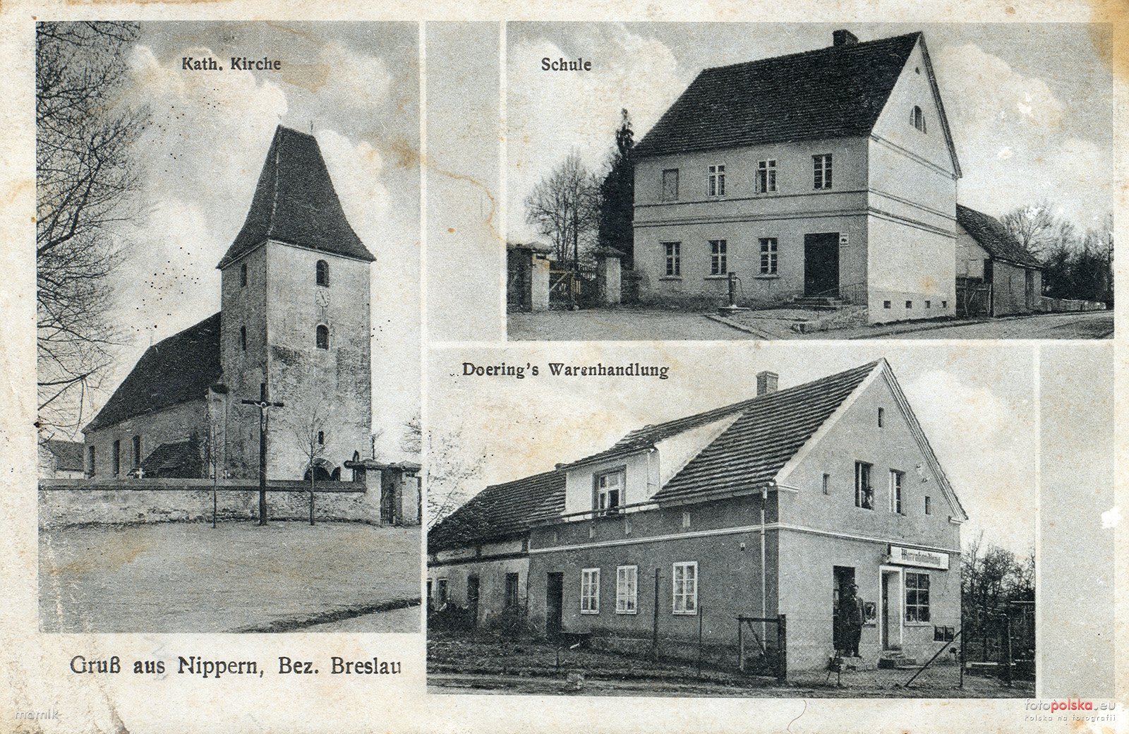 Lata 1930-1940 , Kościół, szkoła i sklep w dawnym Nippern. Wszystkie budynki nadal istnieją.Skomentuj zdjęcie |