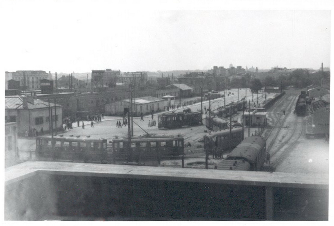 Lata 1940-1944 , Pętla tramwajowa na ulicy Kijowskiej. Z lewej widoczne perony dworca Warszawa-Wschodnia. Z prawej bocznice kolejowe.Skomentuj zdjęcie |