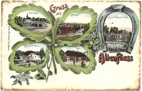 1905 , Przyłęg na litografii - kościół, szkoła, ulica, willa, młyn, poczta.Skomentuj zdjęcie