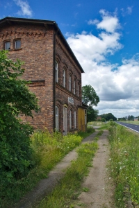30 czerwca 2013 , Stacja Manieczki. Widok z peronu. Tor znajduje się (nadal) w wąskim pasie trawy wzdłuż drogi.Skomentuj zdjęcie |