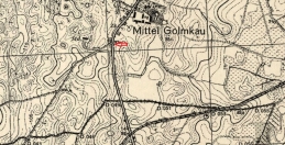 Lata 1934-1935 , Gołębiewo Średnie niem. Mittel Golmkau, posterunek graniczny Wolnego Miasta Gdańska. Sekcja D przebiegała od punktu między Bożym Polem a Postelau, przez punkt Gołębiewo Średnie / Mittel Golmkau, między Dalwinem, a Sobbowitz, między Miłobądzem, a Kohlin, przez Łąki Tczewskie (Wiesenau) do Wisły (Weichsel).Odcinek ten liczył ponad 30 km, ustawiono na nim 170 słupów oznaczonych od D001 do D170.Skomentuj zdjęcie