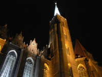 Kościół ma 66 m długości, 44 m szerokości, wysokość naw – 19 m. Dwie wieże, znajdujące się w narożach między halą a transeptem (tylko południowa, wyższa została w pełni ukończona, zakończona iglicą, wysoka na 69 m) są pokryte blachą miedzianą i pochodzą z ok. 1484 r..