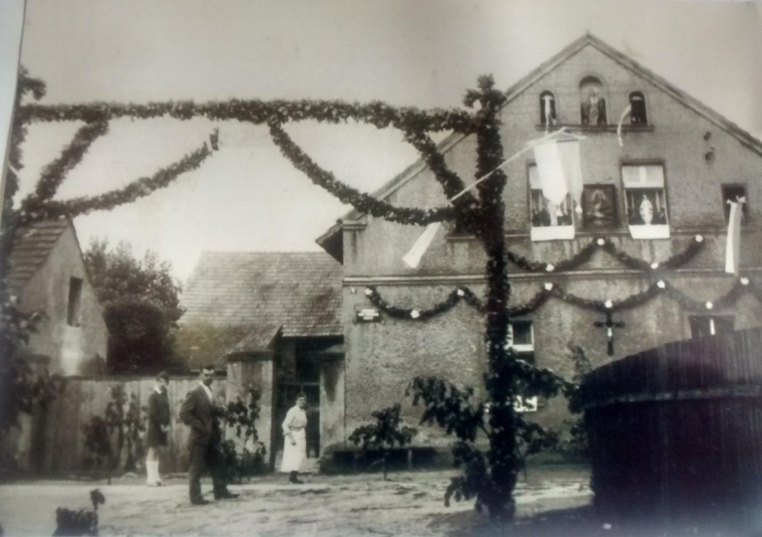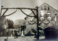 Lata 1970-1975 , Dom rodziny Markieton udekorowany z okazji Bożego Ciała.Skomentuj zdjęcie