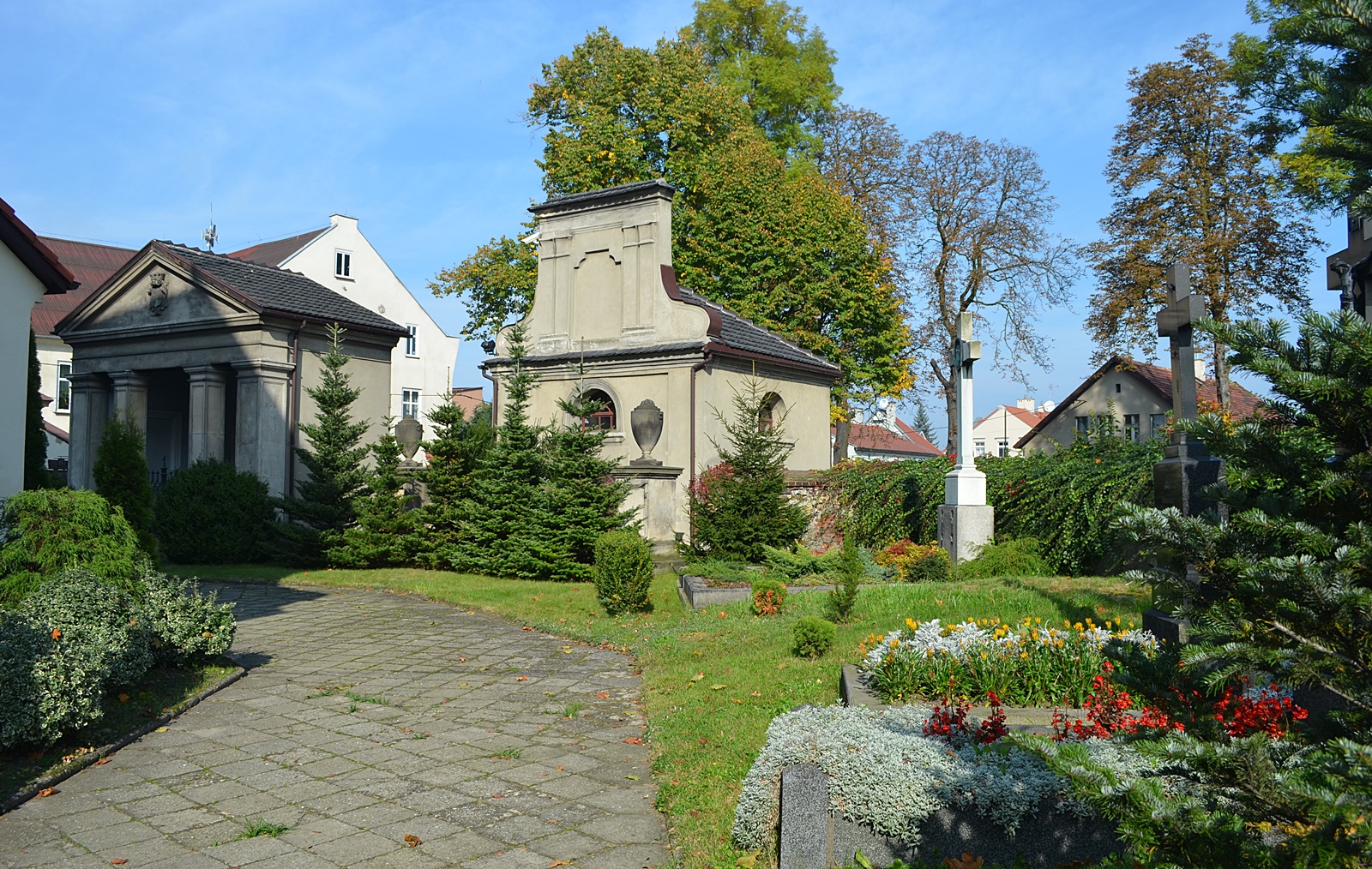 Kościół Wniebowzięcia Najświętszej Maryi Panny więcej zdjęć (40) Atrakcja turystyczna Zbudowano: XV, XVIII w. Dawniej: Katholische Kirche Zabytek: A/303/60 Kościół p.w. Wniebowzięcia NMP w Łabędach wyraźnie wspominają dokumenty nuncjusza apostolskiego Galharda de Carceribus z 1339 r. Jednak pierwsza wzmianka o kościele pochodzi z 1317 r. i wynika z niej, że kościół, a prawdopodobnie także parafia istniały prawdopodobnie od ok. 1217 roku. Wzmiankowany kościół spłonął w czasie wojny trzydziestoletniej. Obecny, wzniesiony w XV w., został przebudowany w latach 1712–1719 ze środków fundacji Jana Bernarda Welczka (przedłużono nawę od zachodu, dobudowano wieżę, kaplice przy nawie i prezbiterium, empory, nowe sklepienia). Na krótko przed wizytacją w 1719 roku sporządzono ołtarz główny z obrazem Matki Boskiej Wniebowziętej. Okazale wyglądały również boczne kaplice: św. Józefa i św. Karola Boromeusza. Po stronie lekcji znajdowały się dodatkowo ołtarze NMP i św. Barbary. Wśród barokowego wyposażenia znajduje się również ołtarz z flamandzkim obrazem św. Hieronima z XVII w. Kościół konsekrował biskup sufragan wrocławski Elias Sommerfeldt 18 września 1719 r. Bp Sommerfeldt polecił także obchodzić rocznicę konsekracji kościoła w niedzielę po uroczystości św. Mateusza. ul. Staromiejska więcej zdjęć (634) Dawniej: Kirchstraße; Kościelna |