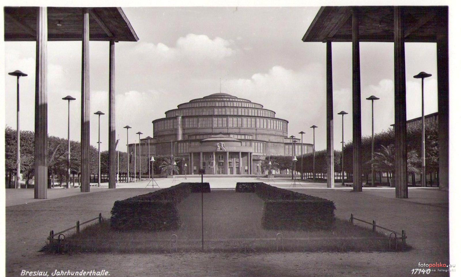 Lata 1938-1944 , Hala Stulecia widziana z dziedzińca wejścia głównego na tereny wystawowe.Skomentuj zdjęcie |