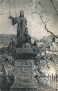 Lata 1945-1947 , "Warszawa zburzona - Chrystus na tle ruin Kościoła Świętej Barbary |