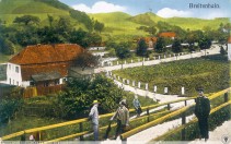 Lata 1905-1910 , Zakosy doprowadzające do przystanku w Lubachowie od głównej ulicy we wsi. Zdjęcie wykonane z poziomu peronu. Widoczny budynek istnieje do dziś. Kiedyś w przybudówce mieściło się coś na kształt bufetu-kiosku oferującego podróżnym drobne przekąski i napojeSkomentuj zdjęcie |