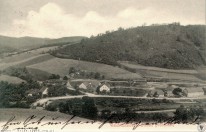 Lata 1904-1905 , Widok na przystanek kolejowy w Lubachowie oraz na urokliwy most nad Złotym Potokiem z północnego ramienia góry Przełęk. Zdjęcie z pierwszych lat funkcjonowania linii w dolinie Bystrzycy.Skomentuj zdjęcie |