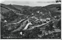 Lata 1935-1940 , Piękny widok na rozbudowaną infrastrukturę jednego z piękniej położonych obiektów kolejowych w Sudetach. Na przystanku Lubachów widać dwie, całkiem obszerne wiaty. Przebieg kolei doliny Bystrzycy widać aż do posterunku dróżnika, który jest najdalej w głębi pokazanym obiektem. Rozmiar zdjęcia zamierzony z uwagi na ilość szczegółów.Skomentuj zdjęcie |