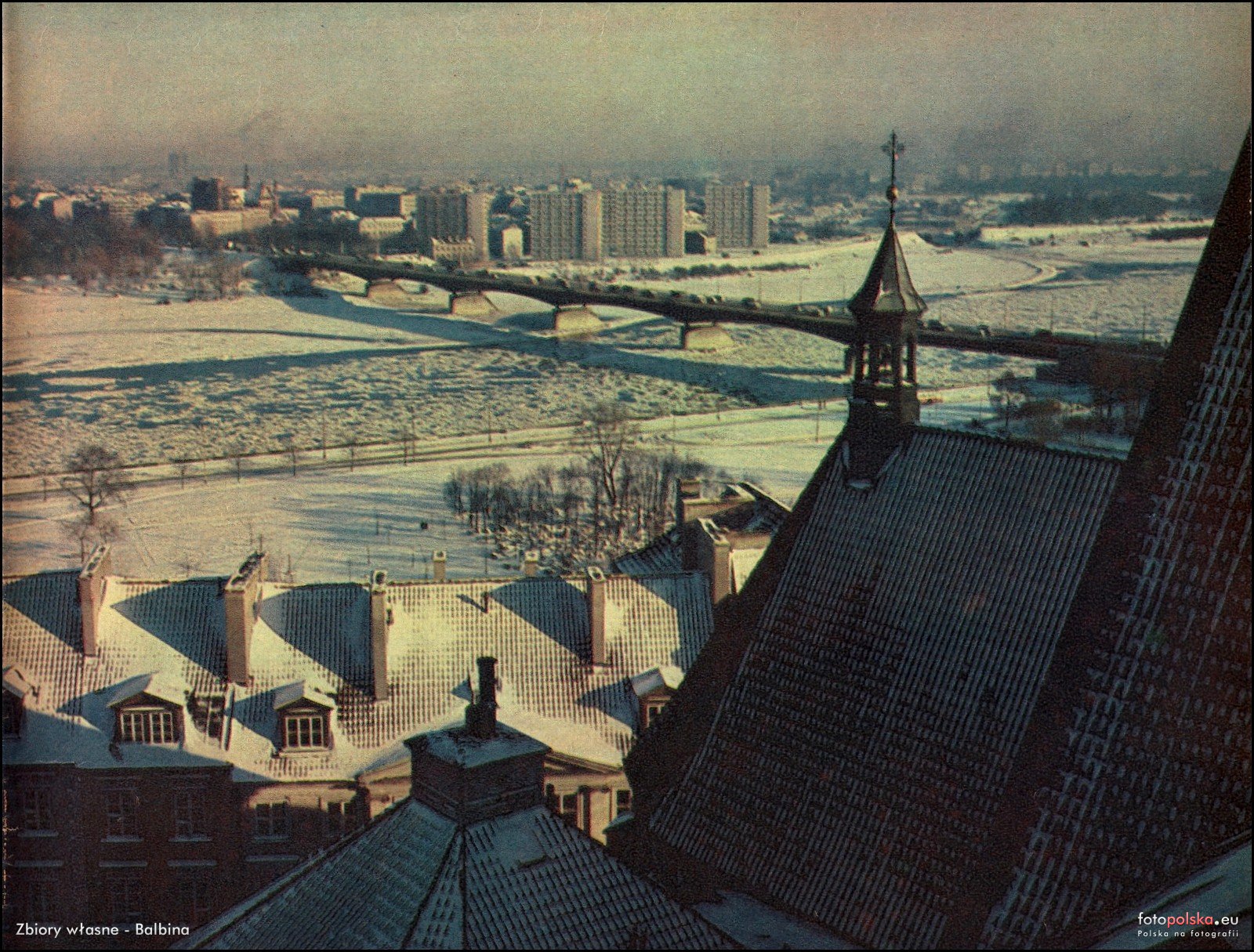1968 , "Przez staromiejskie dachy i Wisłę spojrzenie na panoramę Pragi w rejonie mostu Śląsko-Dąbrowskiego. Z prawej strony wysokie bloki osiedla mieszkaniowego "Panieńska" , z lewej park przy ZOO" - zdjęcie pochodzi z tygodnika Stolica nr 4 (1051) 28.01.1968Skomentuj zdjęcie |