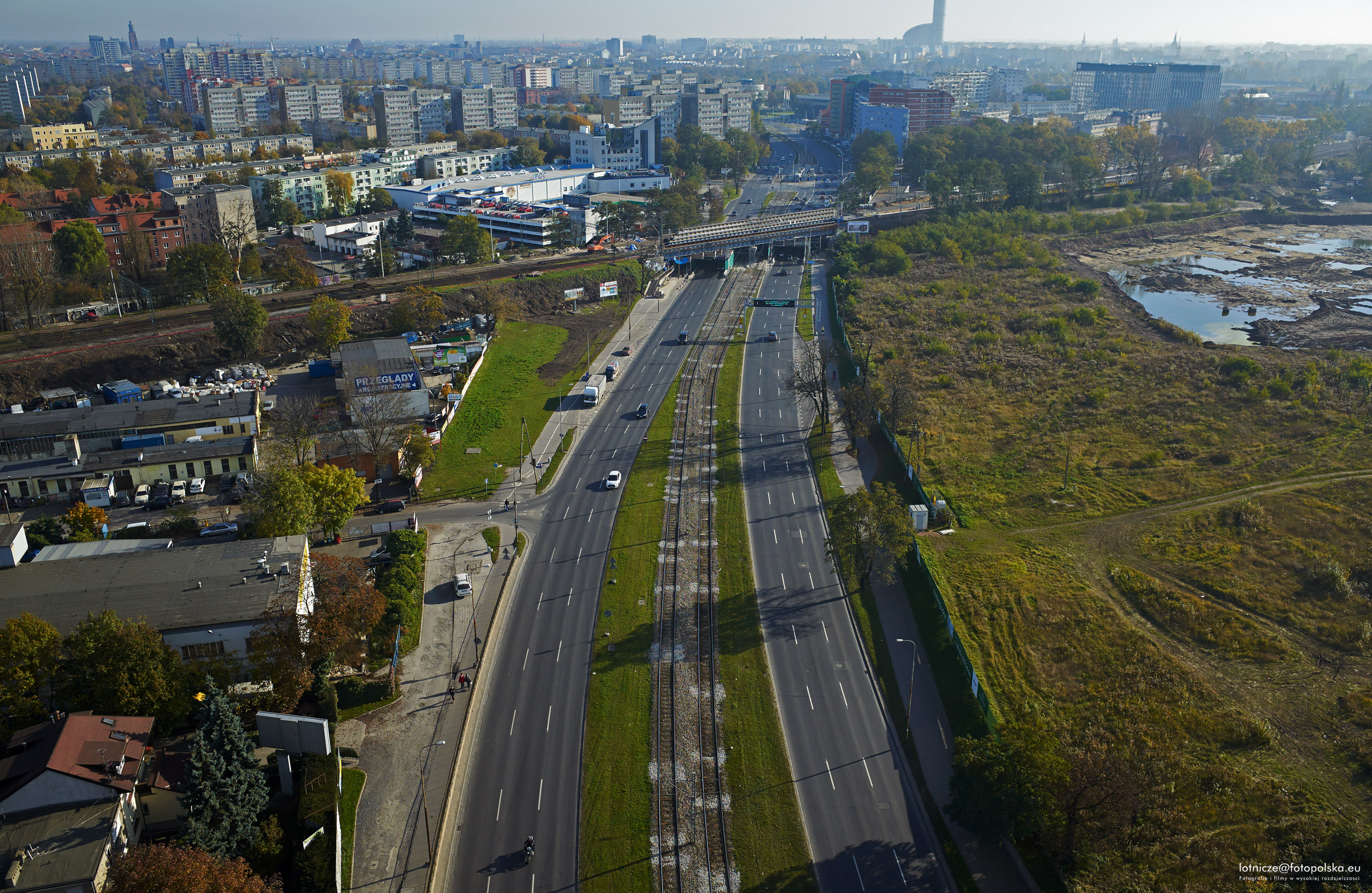 2 listopada 2014 , Ulica Legnicka, widok od ulicy Dąbrówki w kierunku centrum.Skomentuj zdjęcie