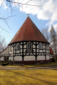 2 pobrania 1332 odsłony 5.99 średnia ocen Poprzednie i następne zdjęcia Saxon Obiekty widoczne na zdjęciu Kościół Matki Bożej Różańcowej więcej zdjęć (22) Atrakcja turystyczna Zbudowano: 1659, 1909 Dawniej: Evangelische Grenzkirche Hummel Zabytek: 168/L/951 z 04.10.1961 Kościół (dawny zbór ewangelicki) p.w. MB Różańcowej z lat 1656 – 59 r. Zbudowany staraniem Hansa Ernesta von Hocke. Wybudowany jako drewniany, a w poł. XIX w. przebudowany na szachulcowy. Restaurowany w 1909 r. i latach 1972 – 77. Budowa i wyposażenie. Kościół szachulcowy, jednonawowy konstrukcji słupowo – ramowej. Prezbiterium mniejsze od nawy, pięciobocznie zamknięte z boczną zakrystią. Z boku nawy kruchta z schodami na emporę. Dach dwukalenicowy, kryty dachówką. W fasadzie frontowej wmurowane epitafia. Wewnątrz jednokondygnacyjna empora obejmująca również prezbiterium. Strop belkowy. Ołtarz główny barokowy. Ambona osadzona na skręconym słupie z pelikanem karmiącym młode na baldachimie. Chrzcielnica barokowa. Drewniana dzwonnica. Zbudowana na planie kwadratu, zwieńczona dachem namiotowym. źródło : Uzupełnienie: podczas ostatniego remontu zlikwidowano część empory w obrębie prezbiterium, obecnie obejmuje jedynie nawę. Także wówczas zmieniono lokalizację drewnianej dzwonnicy stojącej w pobliżu świątyni. Informacja od mieszkańców Trzmielowa zgodna z widokiem zdjęć archiwalnych z linka powyżej - S. Milejski |