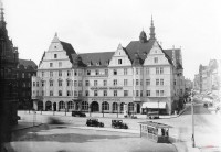 Lata 1928-1933 , Nie istniejąca kamienica na Pl.Słowiańskim. Budynek powstał w roku 1912 jako mieszkalno-usługowy. Na parterze na rogu z ulicą Rzeźnicką znajdował się bar z kasynem, a później kwiaciarnia. Obok mieściła się cukiernia, pośrodku do roku 1929 była kawiarnia "Friedrich Wilhelm Cafe", a na rogu z ulicą Kowalską mieściła się filia firmy galanteryjnej "A. Ischdonat". Na jej miejscu w latach 30-tych powstała księgarnia "Hansa-Buchhandlung". W roku 1929 budynek zakupiła Kasa Oszczędnościowa i utworzyła tam swoją siedzibę.Skomentuj zdjęcie