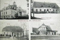 Lata 1915-1920 , Sadowice Wrocławskie - od lewej: pałac Johnstonów. gospoda, stara szkoła i dworzec na stacji kolejowej. Jakość tragiczna ale jedna z pierwszych fotografii Sadowic Wrocławskich.Skomentuj zdjęcie |