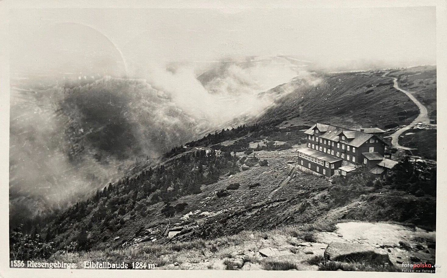 Lata 1935-1942 , Karkonosze. Schronisko Elbfall Baude (Labská Bouda), położone koło Wodospadu Łabskiego na południowym stoku Łabskiego Szczytu.Skomentuj zdjęcie