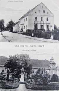 Lata 1905-1915 , Przydroże Małe - gospoda Alfreda Ertelta i pałac z pomnikiem króla Fryderyka II Wielkiego.Skomentuj zdjęcie |