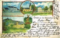 Lata 1900-1911 , Pocztówka z trzema obrazkami z Dąbrowicy (kościół, pałac i gospoda "zum Pelikan") oraz jednym z Wojanowa (dworzec kolejowy).Skomentuj zdjęcie |