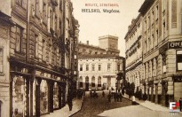 1917 , Ulica Wzgórze w 1917 r., widok z pl. Smolki w kierunku zachodnim. W tle Zamek Sułkowskich.