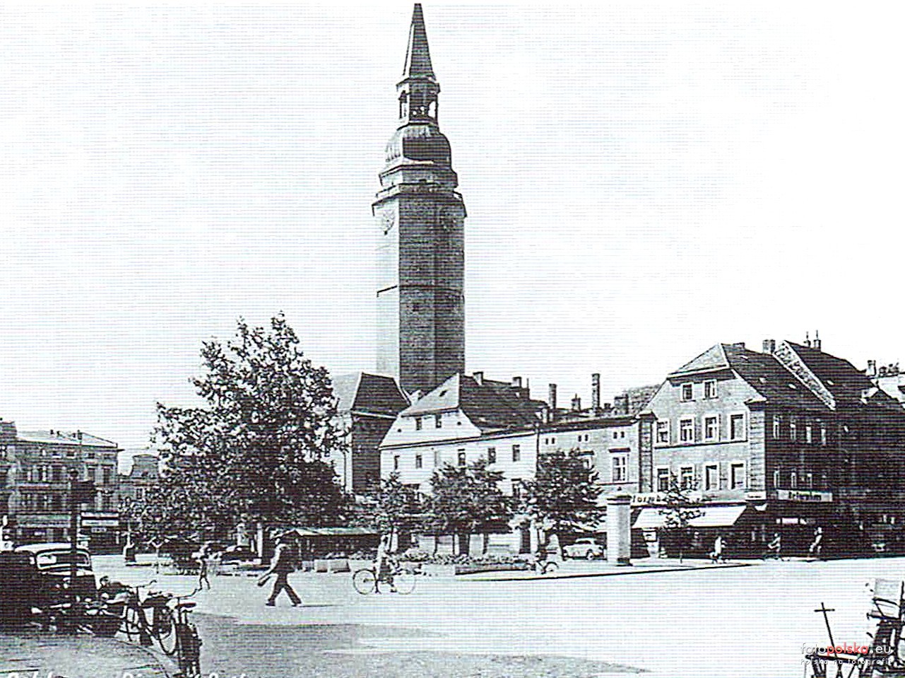 Lata 1935-1939 , Blok śródrynkowy z ratuszem widziany od strony wschodniej. Żaden z budynków nie przetrwał a odbudowano jedynie wieżę ratusza.Skomentuj zdjęcie