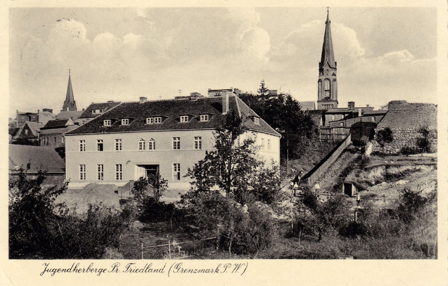 1940 , Debrzno - panorama, z prawej nieistniejąca wieża kościoła ewangielickiego na rynku.Skomentuj zdjęcie