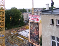 4 lipca 2011 , Budowa Centrum Sztuk Użytkowych Centrum Innowacyjności. Widok z dachu kamienicy przy ul. Krasińskiego.Skomentuj zdjęcie