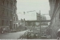 1945 , Pozostałości barykady pod wiaduktem na ulicy Komandorskiej. Widok w kierunku ul. Swobodnej.Skomentuj zdjęcie |