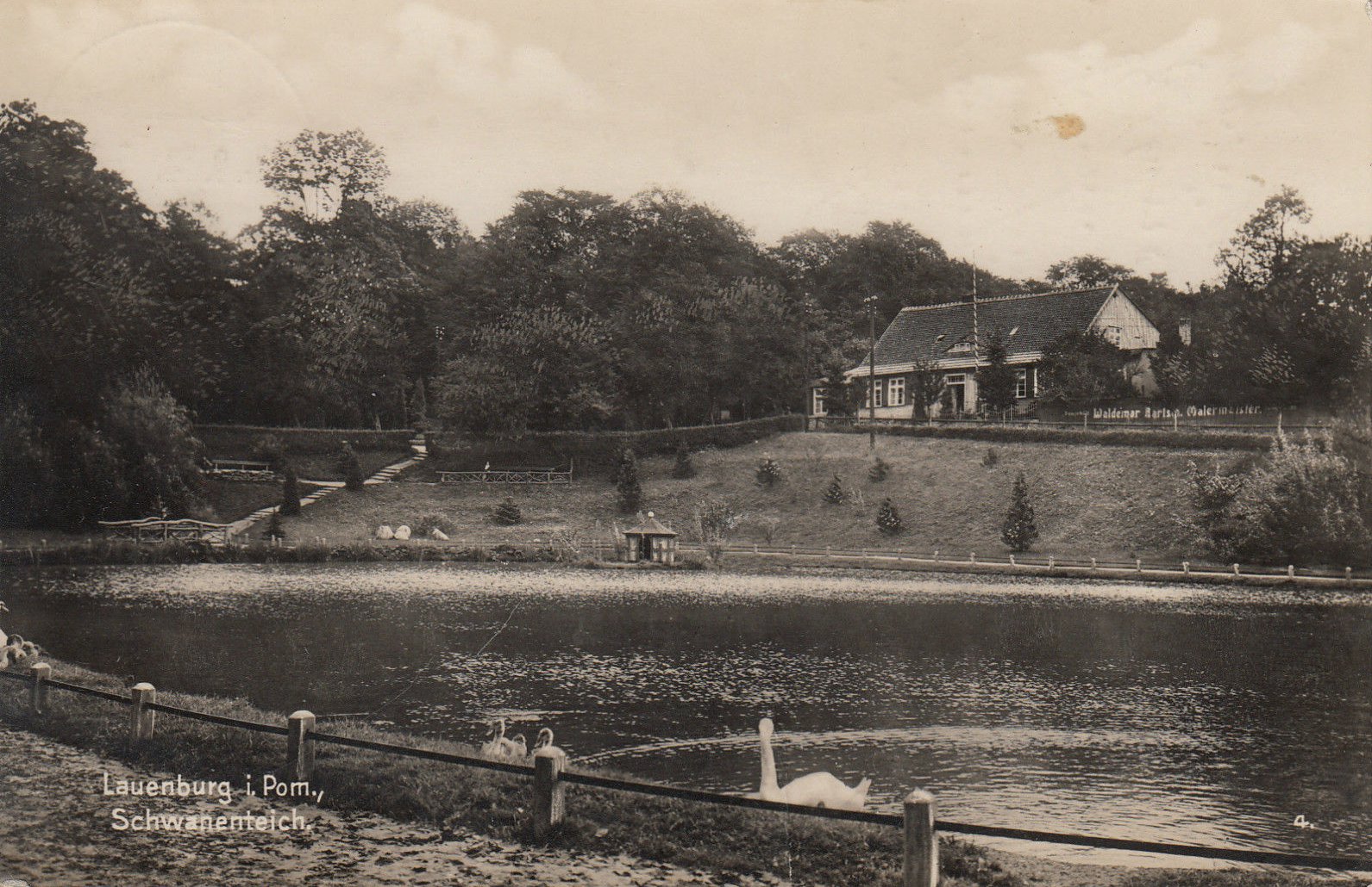 1930 , Park Chrobrego w Lęborku. Schwaneteich.Skomentuj zdjęcie |
