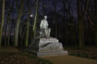 5 marca 2015 , Iluminacja pomnika Henryk Sienkiewicza. Widok od strony Alei Ujazdowskich.Skomentuj zdjęcie