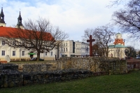 Park Miejski im. Żwirki i Wigury więcej zdjęć (8) Zbudowano: 1852 Dawniej: Park Staromiejski Park Miejski im. Żwirki i Wigury Park Miejski w Wieluniu usytuowany jest w centrum miasta, na tak zwanej Starówce Wieluńskiej. Obejmuje powierzchnię 4,16 ha. Właścicielem parku jest Gmina Wieluń, zaś zarząd nad parkiem sprawuje Urząd Miejski w Wieluniu – Wydział Gospodarki Komunalnej i Mieszkaniowej. Obiekt parku otoczony jest ulicami: - od północy ulicą Królewską; - od wschodu ulicą Krakowskie Przedmieście; - od południa ulicą Józefa Piłsudskiego; - od zachodu ulica Henryka Sienkiewicza. Jego naturalną osłoną od dość ruchliwych ulic, od spalin samochodów i kurzu są żywopłoty rosnące wzdłuż prawie wszystkich granic. W centrum parku znajduje się klasycystyczny gmach wzniesiony na fundamentach zamku królewskiego z XIV wieku, zbudowanego wraz z całym systemem fortyfikacji miejskich. Zamek otoczony był fosą i stawem zasilanymi wodą z pobliskich źródeł. W jego komnatach gościli: król Władysław Jagiełło, król Kazimierz Jagiellończyk i królowa Bona, później był rezydencją siostry Zygmunta Augusta – królowej węgierskiej Izabeli, a w 1566 roku mieszkała tu Katarzyna Austriaczka, trzecia żona Zygmunta Augusta. Dziś w budynku mieści się Starostwo Powiatowe, część pomieszczeń zajmuje Urząd Miejski. Na uwagę zasługują także odrestaurowane fundamenty kościoła kolegiackiego z XIII wieku, zbombardowanego przez niemieckich lotników w dniu 1 IX 1939 roku, (to w Wieluniu spadły pierwsze bomby II wojny światowej). Obecnie stanowią one swego rodzaju pomnik zniszczenia miasta Wielunia, odbywają się tu również uroczystości religijno-patriotyczne. W obrębie parku, przy ulicy Krakowskie Przedmieście, znajduje się budynek Wieluńskiego Domu Kultury. W latach 1902-1914 była to cerkiew prawosławna wzniesiona dla potrzeb stacjonującego w mieście Piątego Dońskiego Pułku Kozaków, brygady straży granicznej, urzędników komór celnych. Po opuszczeniu Wielunia przez Rosjan, w 1914 roku, budynek przez wiele lat był opustoszały. Wykupiony w 1934 roku przez władze samorządowe, został przekształcony w Muzeum Ziemi Wieluńskiej. Zmianie uległa jego architektura, zdjęto bowiem kopuły, charakterystyczne dla świątyń obrządku wschodniego. Park przecina wiele ciągów spacerowych, węższych i szerszych alejek oraz ścieżek, które dzielą powierzchnię obiektu na 32 kwatery. Urządzono w nim plac zabaw dla dzieci i parking przed gmachem starostwa. Liczne ławki umożliwiają wypoczynek. W południowo-zachodniej części parku znajduje się staw z fontanną, w miejscu dawnej fosy przebiega rów z ciekiem wodnym, zasilanym ze źródeł w klasztorze bernardynek. Historia Park Staromiejski im. Żwirki i Wigury powstał w 1852 roku z inicjatywy komisarza obwodu wieluńskiego – Fryderyka Augusta Goleńskiego. Komisarz przedstawił władzom projekt uporządkowania części miasta między Krakowskim Przedmieściem a ulicami Szpitalną i Farną przez oczyszczenie fos, splantowanie wałów, obsadzenie tych terenów drzewami i krzewami ozdobnymi. W ten sposób, w pobliżu historycznego centrum miasta, miał być urządzony „ogród spacerowy dla publiczności”. Projekt urządzenia parku, autorstwa inżyniera powiatu wieluńskiego, Brochockiego, spotkał się z poparciem magistratu. W 1852 roku rozpoczęto prace porządkowo-budowlane. Wielunianie społecznie wyszlamowali i oczyścili rozległy staw między ratuszem a zamkiem, splantowali ziemię po wałach miejskich. Następnie wytyczono aleje spacerowe, zasiano trawę, zasadzono rośliny. Pod koniec XIX i na początku XX wieku park stał się ozdobą miasta i ulubionym miejscem spacerowym. W 1895 roku, do jego dalszego uporządkowania i upiększania przyczynił się pomocnik naczelnika powiatu - Patocki. W okresie międzywojennym władze miejskie, mimo ciężkiej sytuacji budżetowej, troszczyły się o park. Na początku lat 20-tych powiększono obszar parku przez zasypanie dawnej fosy. Jego atrakcją stał się zwierzyniec oraz ustawione na strumykach mini młynki i wiatraki wprawiane w ruch przez strumień wody. W 1927 roku obszar parku jeszcze poszerzono i ogrodzono. W okresie letnim odbywały się w nim koncerty orkiestry Ochotniczej Straży Pożarnej. W dniu 18 maja 1933 roku, w rok po tragicznej śmierci pilotów Franciszka Żwirki i Stanisława Wigury, w związku z uroczystymi wojewódzkimi obchodami 10-lecia Ligi Obrony Powietrznej i Przeciwgazowej (LOPP), parkowi nadano imię Żwirki i Wigury. Aleje parkowe i przyległa do parku ulica Henryka Sienkiewicza pełniły rolę wieluńskiej promenady. Tu odbywały się rodzinne spacery. W godzinach wieczornych i nocnych park zamykano. W latach okupacji hitlerowskiej był on udostępniany tylko Niemcom, o czym informowały ustawione tablice. Po wojnie parkowi powoli przywracano świetność. Nie był już zamykany na noc. Urządzono w nim sadzawkę, latem zarybioną pięknymi okazami ryb. Systematycznie powiększano jego obszar o tereny po wyburzonych domach przy ulicy Krakowskie Przedmieście i Królewskiej. Spokojne życie parku zostało przerwane w nocy z 1 na 2 czerwca 1995 roku, kiedy to huragan, jaki przeszedł nad Wieluniem, zniszczył 40% drzewostanu, w tym kilka pomników przyrody. Dziś park pełni funkcję rekreacyjną, kulturalną i edukacyjną. W Wieluńskim Domu Kultury (dawna cerkiew), znajdującym się na terenie parku, organizowane są imprezy kulturalne. Przed ruinami Fary odbywają się uroczystości religijne. To właśnie tu, 1 IX 2004 roku, podczas Centralnych Obchodów 65. Rocznicy Wybuchu II Wojny Światowej, prezydent RP Aleksander Kwaśniewski odsłonił tablicę pamiątkową ku czci ofiar nalotu Luftwaffe w pierwszych minutach wybuchu II wojny światowej. Przyroda W parku dominują drzewa i krzewy liściaste. Wśród nich spotykamy: bez czarny, brzozę brodawkowatą, buk pospolity, czeremchę zwyczaj