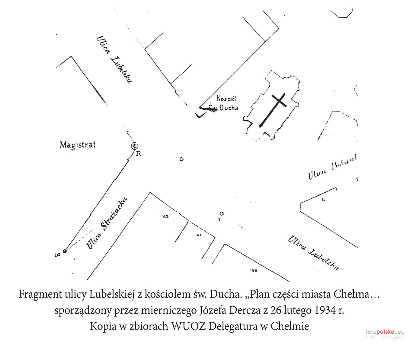 1934 , Plan usytuowania kościoła św. Ducha w Chełmie. Żródło: S. Rudnik, Ulica Lubelska w Chełmie na tle historii rozwoju przestrzennego miasta w Rocznik Chełmski, Tom 16, Chełm 2012, str. 76, (oai:cyfrowa.chbp.chelm.pl:9131)Skomentuj zdjęcie