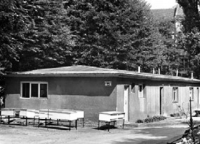 Lata 1970-1980 , Ten niepozorny budynek, bardziej przypominający barak, był pierwszym po drugiej wojnie światowej obiektem wybudowanym na terenie kampusu głównego politechniki, około 1958 r. Miał przeznaczenie biurowo-warszatowe.Skomentuj zdjęcie