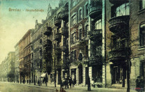 9 pobrań 3021 odsłon 6 średnia ocen Poprzednie i następne zdjęcia wito, Obiekty widoczne na zdjęciu ul. Komandorska więcej zdjęć (1281) Dawniej: Neudorf Strasse Ulica zaczęła powstawać w 1863 r., kiedy urzędnik miejski Nowak przeznaczył część swej parceli przy ul. Piłsudskiego pod nową ulicę. Już dwa lata później otrzymała nazwę Neudorfstr. gdyż prowadziła do dawnej Nowej Wsi należącej do komadnorii joanitów. Stopniowo kamienice czynszowe zaczęły wypierać dawną zabudowę podmiejską i wiejską. W latach 1875-1911 przy południowym odcinku ulicy wzniesiono budynki szpitala Wenzel-Hancke (dziś Akademia Ekonomiczna). Plany urbanistyczne z końca XIX w. przewidywały przedłużenie ulicy do al. Wiśniowej. Niestety zrealizowano tylko krótki odcinek tuż przy dawnym Szpitalu Żydowskim (dziś Szpital Kolejowy), który nigdy nie został połączony z główną ulicą. W czasie wojny wszystkie kamienice zostały zburzone, ocalały jedynie zabudowania dawnego szpitala. Obecna nazwa do 20 III 1972 r. odnosiła się do "głównego" odcinka oraz fragmentu przy al.Wiśniowej. Od tego czasu ten ostatni zaliczany jest do al. Wiśniowej. |
