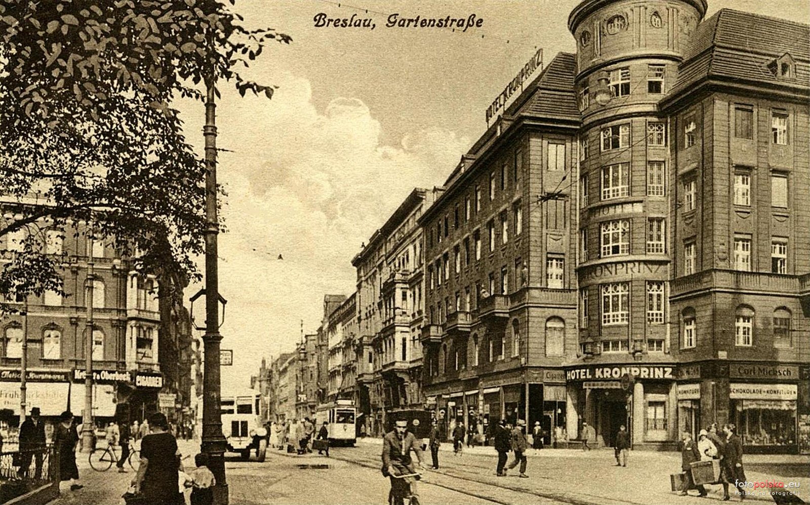 29 pobrań 3861 odsłon 5.97 średnia ocen Poprzednie i następne zdjęcia wito, Obiekty widoczne na zdjęciu Hotel "Piast" więcej zdjęć (117) Architekt: Waldemar Milbradt Zbudowano: 1908 Dawniej: Hotel "Kronprinz", Dom Wycieczkowy "Piast" Hotel "Germania" więcej zdjęć (11) ul. Piłsudskiego Józefa, marsz. więcej zdjęć (5127) Dawniej: Garten Strasse, Am Hauptbahnhof, Ogrodowa, gen. Karola Świerczewskiego Ulica w kształcie, w jakim możemy ją częściowo podziwiać do dzisiaj powstała dopiero w drugiej połowie XIX wieku. Wcześniej była to zwykła polna droga, rzadko zabudowana wiejskimi domami, za którymi ciągnęły się rozległe ogrody. Właśnie od tych ogrodów wzięła się przedwojenna nazwa ulicy – Gartenstrasse (Ogrodowa). Nazwę tą wprowadzono oficjalnie w 1823 r., lecz we wcześniejszych wiekach można spotkać także inne nazwy. Odcinek od ul. Grabiszyńskiej do ul. Stawowej zwano Wielkim Wygonem (Große Anger), a od ul. Stawowej do ul. Dworcowej Nowym Wygonem (Neue Anger) później określany jako Angergasse. Ten ostatni odcinek nosił też czasowo nazwę Am Oberschlesischen Bahnhof lub Am Hauptbahnhof (sam plac przed Dworcem Głównym). Jakby tego było mało to do 1906 r. do Gartenstr. zaliczana była także obecna ul. Gabrieli Zapolskiej. Szybki rozwój ulicy nastąpił po wyburzeniu przez Francuzów fortyfikacji miejskich w 1807 r., a następnie przez wybudowanie w połowie XIX w. najpierw Dworca Górnośląskiego, a następnie Dworca Głównego. Ulica stała się reprezentacyjną arterią Przedmieścia Świdnickiego. W rejonie dworca powstawały hotele (Kronprinz, Nord, Vier Jahreszeiten), ośrodki kulturalne (Dom Koncertowy, obecny Teatr Polski, kino Capitol), urzędy (Śląski Sejm Krajowy, Dyrekcja Kolei). W czasie II wojny światowej zabudowa ulicy została w znacznym stopniu zniszczona. Luki w zabudowie zaczęto uzupełniać już w latach 50. i 60. na północnej stronie ulicy i w rejonie placu Legionów. W 1961 r. ulicę przedłużono od pl. Legionów od pl. Orląt Lwowskich. Przez pierwsze dwa powojenne lata ulica nosiła przetłumaczoną niemiecką nazwę czyli była to ul. Ogrodowa. W kwietniu 1947 r. patronem ulicy został Karol Świerczewski (1897-1947), generał, działacz komunistyczny, zabity 28 III 1947 r. przez oddział UPA pod Jabłonkami w Bieszczadach. Od 1992 r. patronem jest marszałek Józef Klemens Piłsudski (1867-1935), pierwszy Marszałek Polski, mąż stanu, Naczelnik Państwa, dwukrotny premier II RP. |