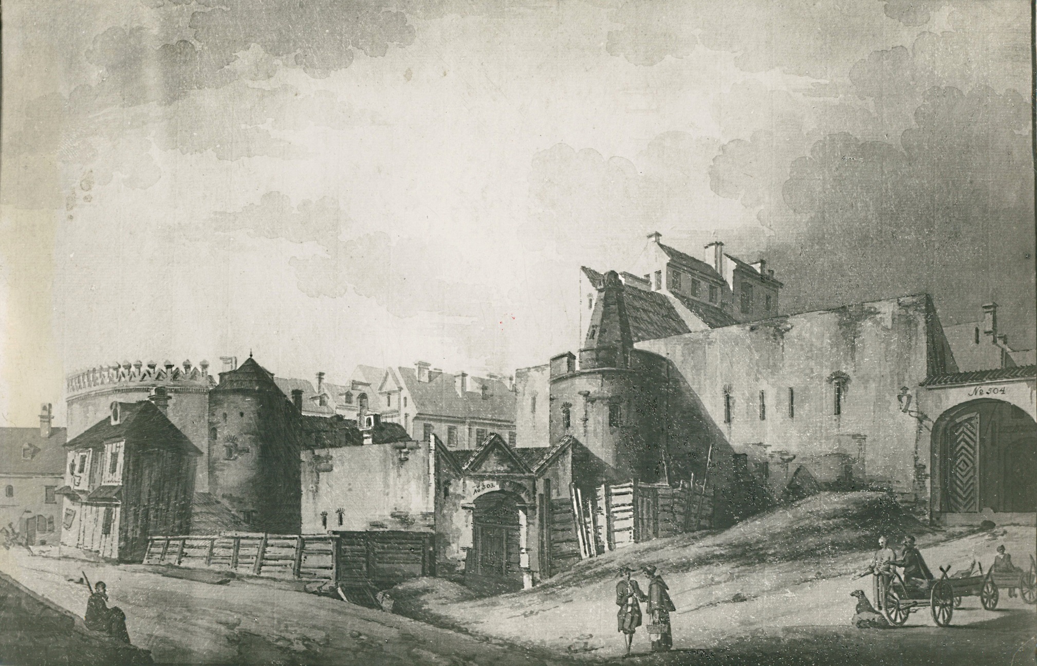 1785 , Fotografia akwareli Zygmunta Vogla z 1785 roku zatytułowanej "Widok Barbakanu i wejścia do mięsnych jatek".Skomentuj zdjęcie