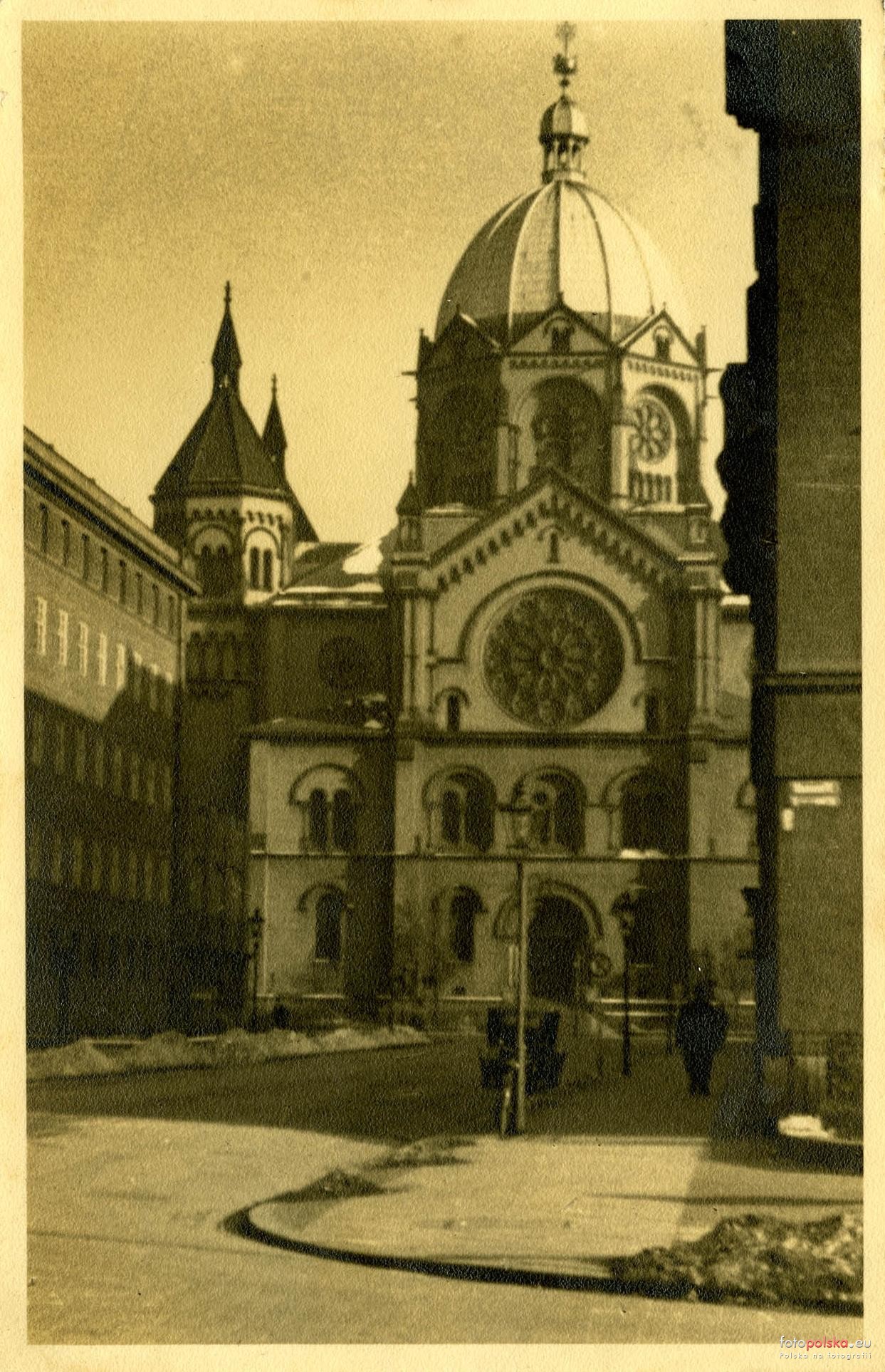 1938 , Nowa Synagoga widziana z ul. Druckiego-Lubeckiego. Po lewej fragment budynku Prezydium Policji. Fot. ze zbiorów College of Charleston Libraries.Skomentuj zdjęcie |