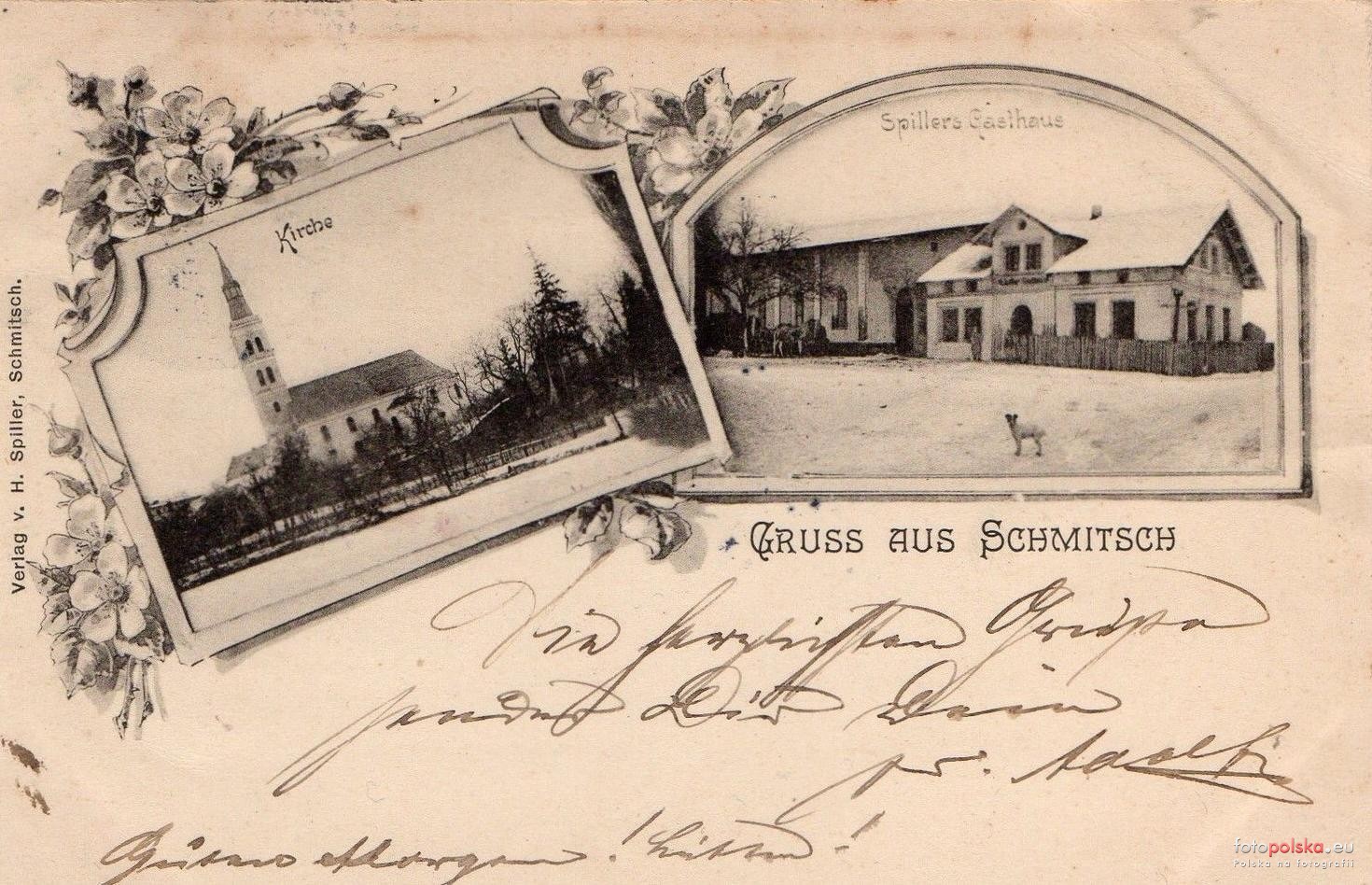 Lata 1890-1900 , Kościół i gospoda Spillera.Skomentuj zdjęcie |