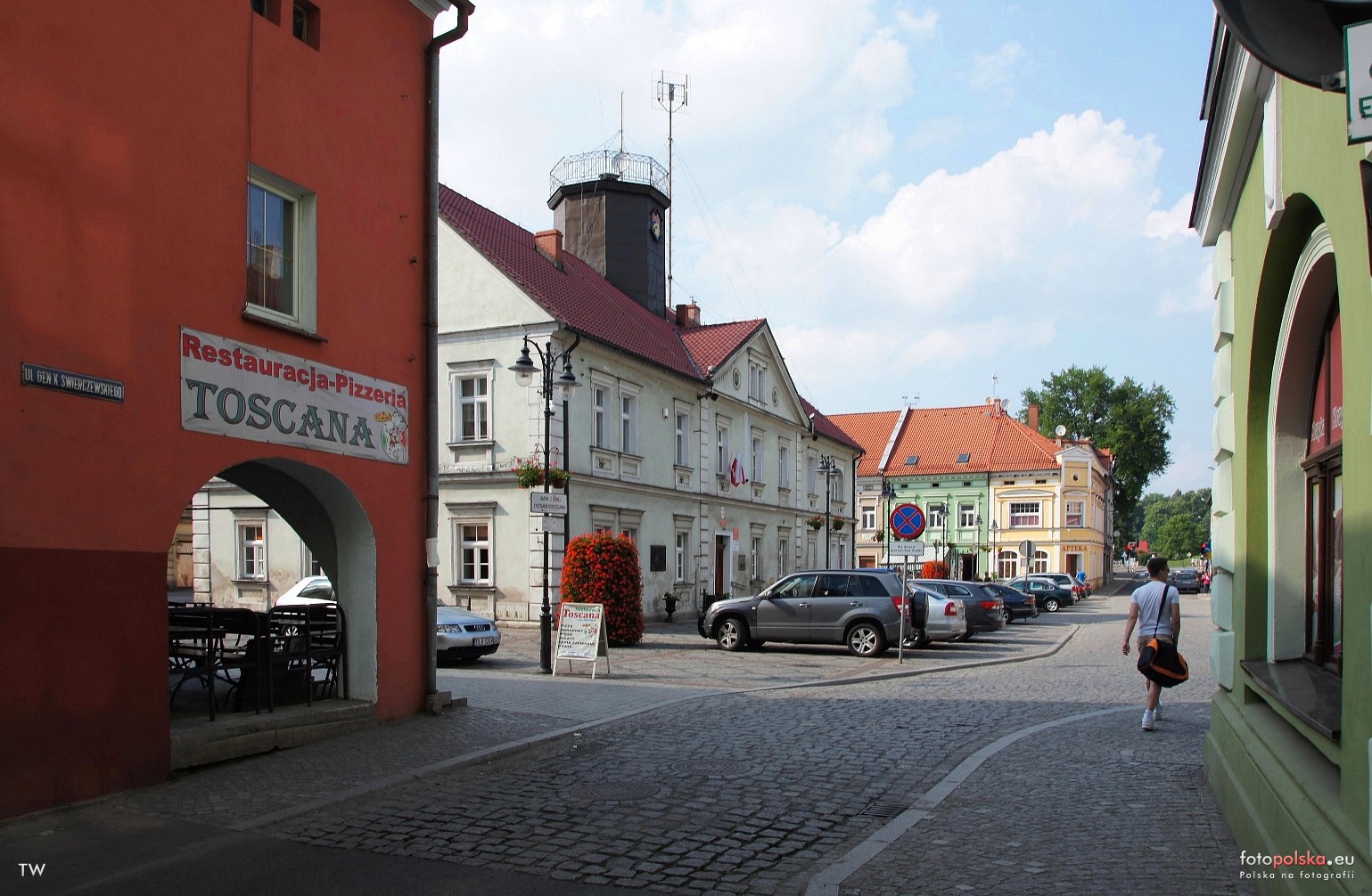 12 czerwca 2015 , Widok na Rynek z Ratuszem w Leśnej (od strony ul. Świerczewskiego).Skomentuj zdjęcie |