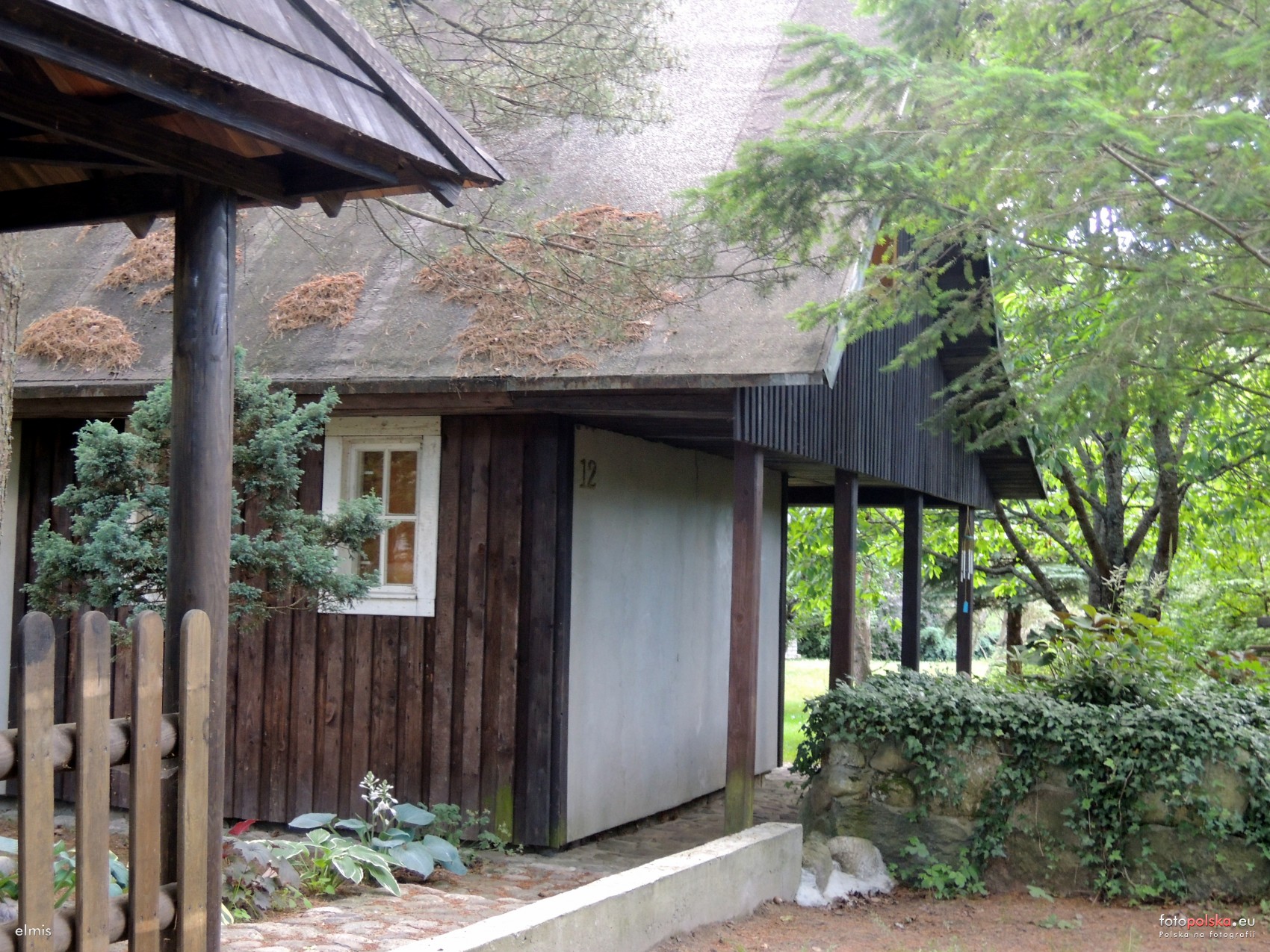 , Domek letniskowy, wzorowany na budownictwie tradycyjnym Borów Tucholskich.