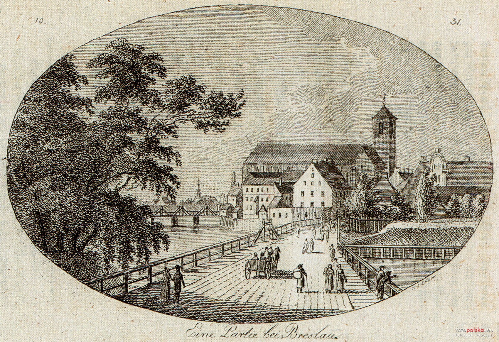 1809 , Wyspa Piasek widziana z mostu który stał w miejscu mostu Młyńskiego. Fot. Der Breslauische Erzahler.Skomentuj zdjęcie |