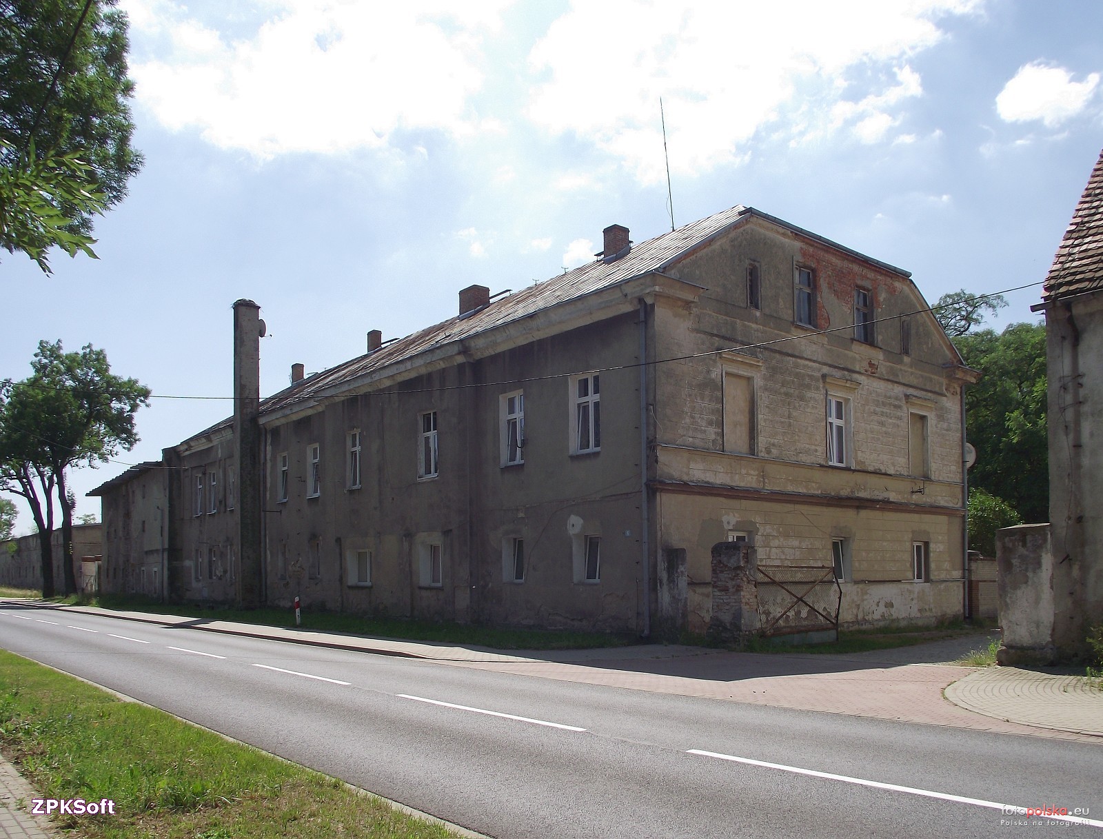 1 pobranie 727 odsłon 5.75 średnia ocen Poprzednie i następne zdjęcia ZPKSoft Obiekty widoczne na zdjęciu Pałac więcej zdjęć (3) Zlikwidowano: XIX, XX w. Dawniej: Schloss Pałac wzniesiony prawdopodobnie w pierwszym ćwierćwieczu dziewiętnastego stulecia. Powiększony pod koniec XIX wieku o cztery osie, został przebudowany pomiędzy 1910 a 1920 rokiem i w drugiej połowie XX wieku. Budynek murowany z cegły, potynkowany, założony na planie wydłużonego prostokąta, częściowo podpiwniczony, dwukondygnacyjny, z częściowo użytkowym poddaszem, nakryty dachem dwuspadowym z naczółkiem od strony zachodniej. Fasada (elewacja południowa) jedenastoosiowa, pierwotnie symetryczna, siedmioosiowa, z głównym wejściem usytuowanym w parterowym ganku, zwieńczonym balkonem. Elewacja północna dziewięcioosiowa, z dwuosiowym płytkim ryzalitem w części zachodniej. Część elewacji zachowała ozdobne detale architektoniczne: gzyms między kondygnacyjny, proste nadokienniki w drugiej kondygnacji, boniowanie wykonane w tynku. Układ pomieszczeń zmieniony, w części zachodniej trzytraktowy z centralnym holem, w przedłużeniu którego klatka schodowa. W piwnicach zastosowano stropy odcinkowe, w holu na parterze sklepienie kolebkowe z lunetami, a na piętrze strop z dekoracją fasetową. Resztę pomieszczeń nakrywają płaskie stropy. Po drugiej wojnie światowej majątek przejęło państwo polskie. Folwark wraz z pałacem przekazano w zarząd Państwowemu Gospodarstwu Rolnemu. Rezydencję przekształcono w wielorodzinny budynek mieszkalny dla pracowników przedsiębiorstwa. W 1976 roku PGR przeprowadził remont elewacji i dachu pałacu. Od 1977 roku folwark należał do Strzelińskiego Kombinatu Rolnego. W latach dziewięćdziesiątych XX wieku po upadku Kombinatu zabudowania znalazły się w posiadaniu Agencji Nieruchomości Rolnej Skarbu Państwa. Obecnie trudno określić stan własnościowy budynków. Pałac i oficyna w dalszym ciągu użytkowane pełnią funkcje mieszkalne. Pałac zamyka od północy dziedziniec gospodarczy. Przed fasadą rezydencji niewielkie zadrzewienie, pozostałość po ogrodzie widocznym na przedwojennej widokówce. W pierzei wschodniej folwarku dawna oficyna – budynek nr 9a. Większość pofolwarcznych zabudowań gospodarczych doprowadzona do ruiny. Na południe od folwarku zaniedbany i zdziczały park. za : |