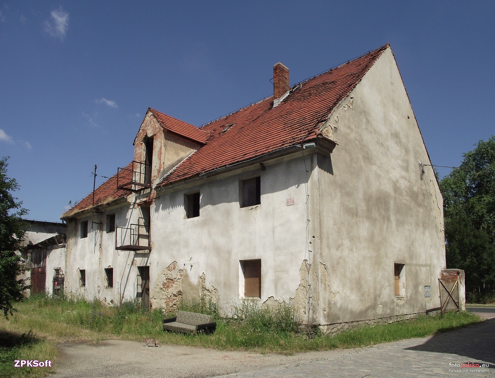 1 pobranie 749 odsłon 5.99 średnia ocen Poprzednie i następne zdjęcia ZPKSoft Obiekty widoczne na zdjęciu Folwark więcej zdjęć (3) Pałac więcej zdjęć (3) Zlikwidowano: XIX, XX w. Dawniej: Schloss Pałac wzniesiony prawdopodobnie w pierwszym ćwierćwieczu dziewiętnastego stulecia. Powiększony pod koniec XIX wieku o cztery osie, został przebudowany pomiędzy 1910 a 1920 rokiem i w drugiej połowie XX wieku. Budynek murowany z cegły, potynkowany, założony na planie wydłużonego prostokąta, częściowo podpiwniczony, dwukondygnacyjny, z częściowo użytkowym poddaszem, nakryty dachem dwuspadowym z naczółkiem od strony zachodniej. Fasada (elewacja południowa) jedenastoosiowa, pierwotnie symetryczna, siedmioosiowa, z głównym wejściem usytuowanym w parterowym ganku, zwieńczonym balkonem. Elewacja północna dziewięcioosiowa, z dwuosiowym płytkim ryzalitem w części zachodniej. Część elewacji zachowała ozdobne detale architektoniczne: gzyms między kondygnacyjny, proste nadokienniki w drugiej kondygnacji, boniowanie wykonane w tynku. Układ pomieszczeń zmieniony, w części zachodniej trzytraktowy z centralnym holem, w przedłużeniu którego klatka schodowa. W piwnicach zastosowano stropy odcinkowe, w holu na parterze sklepienie kolebkowe z lunetami, a na piętrze strop z dekoracją fasetową. Resztę pomieszczeń nakrywają płaskie stropy. Po drugiej wojnie światowej majątek przejęło państwo polskie. Folwark wraz z pałacem przekazano w zarząd Państwowemu Gospodarstwu Rolnemu. Rezydencję przekształcono w wielorodzinny budynek mieszkalny dla pracowników przedsiębiorstwa. W 1976 roku PGR przeprowadził remont elewacji i dachu pałacu. Od 1977 roku folwark należał do Strzelińskiego Kombinatu Rolnego. W latach dziewięćdziesiątych XX wieku po upadku Kombinatu zabudowania znalazły się w posiadaniu Agencji Nieruchomości Rolnej Skarbu Państwa. Obecnie trudno określić stan własnościowy budynków. Pałac i oficyna w dalszym ciągu użytkowane pełnią funkcje mieszkalne. Pałac zamyka od północy dziedziniec gospodarczy. Przed fasadą rezydencji niewielkie zadrzewienie, pozostałość po ogrodzie widocznym na przedwojennej widokówce. W pierzei wschodniej folwarku dawna oficyna – budynek nr 9a. Większość pofolwarcznych zabudowań gospodarczych doprowadzona do ruiny. Na południe od folwarku zaniedbany i zdziczały park. za : |