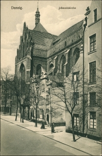 Kościół św. Jana - Nadbałtyckie Centrum Kultury więcej zdjęć (96) Zbudowano: 1377 Dawniej: St. Johanniskirche Zabytek: 442 (d.317 / 27.02.1967) Kościół św. Jana w Gdańsku (Główne Miasto ul. Świętojańska 50). Budowę kościoła rozpoczęto około 1377 w miejscu wybudowanej w 1353 kaplicy św. Jana. Etapy rozbudowy kościoła: do 1415 wybudowano korpus zachodni (halowy), jednonawowe prezbiterium i transept w latach 1450 - 1463 podwyższono halę, rozbudowano prezbiterium do trzech naw, w latach 1463 - 1465 przesklepiono całe wnętrze. w 1453 próbowano podwyższyć wieżę, jednak wobec sprzeciwu Krzyżaków sprawa ta została odsunięta w czasie i zrealizowana dopiero po wojnie trzynastoletniej w 1679 zdjęto szczyty i ustawiono potężne przypory wschodniej ściany, by uratować ją przed osunięciem (fundamenty były osłabione na skutek grzebania zwłok w ośmiu warstwach pod posadzką kościoła). Kościół ten stanowił do 1945 swoiste muzeum z ekspozycją wielu wspaniałych dzieł sztuki. Najważniejsze z nich to: gotyckie Ukrzyżowanie z 1482 i dwa rzędy ław renesansowy ołtarz z piaskowca i marmuru (z białym orłem we fryzie) o wysokości 12 m autorstwa Abrahama van den Blocka z 1611 barokowe organy wielkie (z lat 1629 - 1745) i małe (1685 - 1761), kazalnica, halle straganiarzy, żeglarzy, murarzy i rodzin: Schopenhauerów i Muhlów oraz loża kata elementy wystroju (23 lichtarze z reflektorami, pająk, biblioteka, mosiężne baptysterium, zegar na wieży) - fundowane w większości przez Zachariasza Zappio (zm. w 1680) i jego żonę. Po II wojnie światowej większość wyposażenia została przeniesiona do Kościoła Mariackiego w Gdańsku. Kościół nie został po wojnie przejęty na cele kultu religijnego, przez wiele lat niszczał, stanowił także scenografię dla filmów wojennych (m.in. Kolumbowie w reżyserii Janusza Morgensterna według powieści Romana Bratnego - Kolumbowie. Rocznik 20), skutkiem czego popadał w dalszą ruinę. Obecnie jest wyremontowany z zewnątrz, natomiast wnętrze pozostało zabezpieczoną ruiną. Odbywają się w nim koncerty i wystawy organizowane przez Nadbałtyckie Centrum Kultury, a także niedzielne msze święte (o godz. 12) Duszpasterstwa Środowisk Twórczych Archidiecezji Gdańskiej. Liturgia sprawowana jest w językach: kaszubskim, niemieckim i polskim. W roku 2006 mroczne i przytłaczające swoim ogromem wnętrze kościoła było scenerią dla spektakli teatralnych X Festiwalu Szekspirowskiego [1]. Obecnie kościół czeka duża renowacja, która spowoduje zamknięcie świątyni na ponad rok. Po zakończeniu renowacji zaczną wracać będące obecnie w innych kościołach obiekty. ul. Świętojańska więcej zdjęć (341) Dawniej: Johannisgasse |