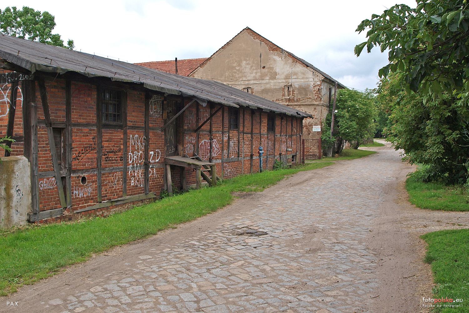 , Wawrzeńczyce - brukowana ulica we wsi.