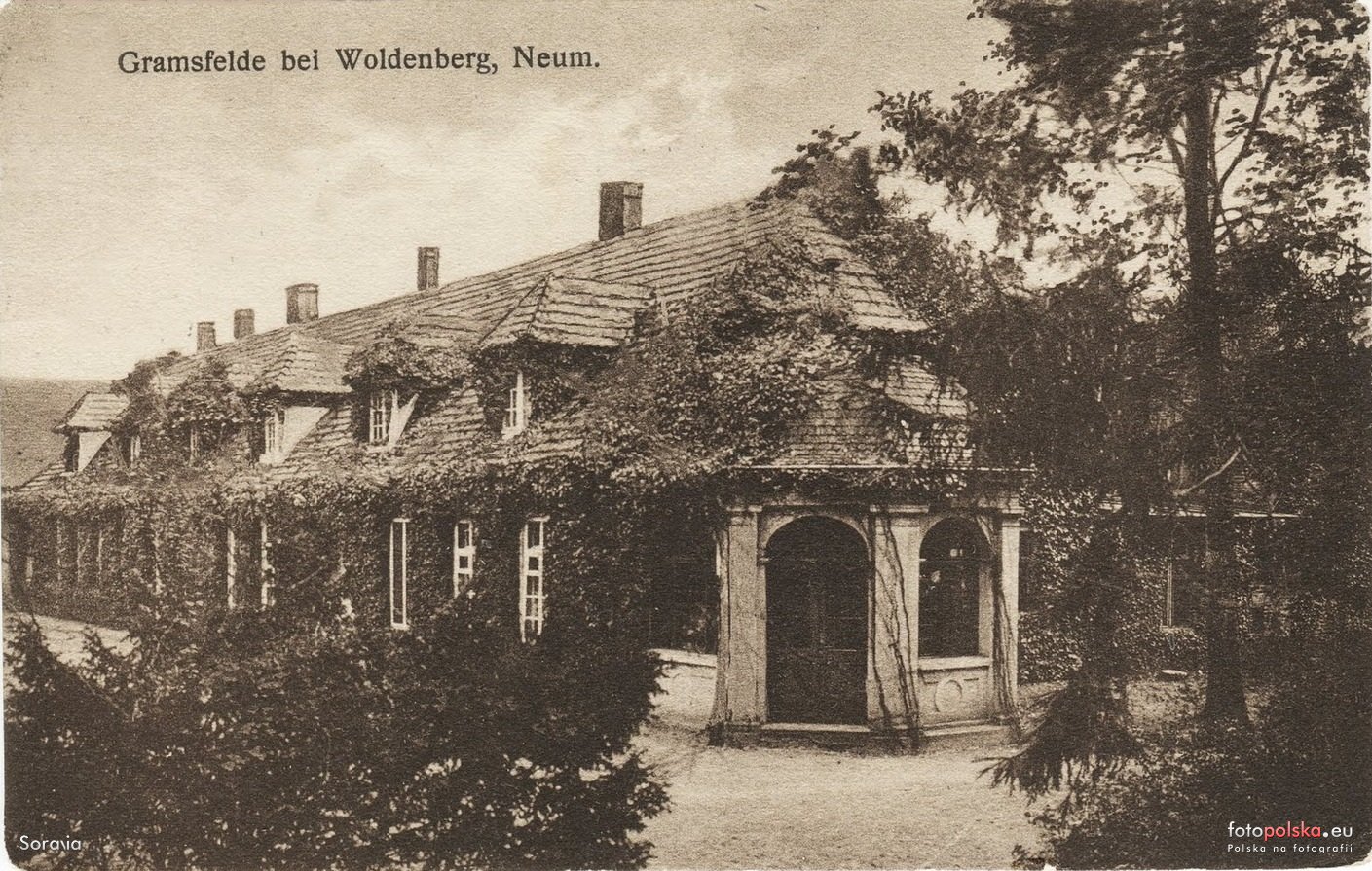 6 pobrań 1206 odsłon 6 średnia ocen Poprzednie i następne zdjęcia Soravia Obiekty widoczne na zdjęciu Dwór więcej zdjęć (10) Dawniej: Wohnhaus Budynek dworu znajduje się w ramach założenia folwarcznego zlokalizowanego na północ od drogi z Dobiegniewa do Drawna, przy polnej drodze do Klasztornego. Na wschód od tej drogi znajduje się czworoboczny dziedziniec reprezentacyjno-gospodarczy, dwustronnie zabudowany. Dwór mieści się po stronie południowej. Po stronie zachodniej znajduje się park podworski z cmentarzem właścicieli, dawnym sadem oraz reliktami zabudowań młyńskich. Po stronie północnej i zachodniej rozmieszczone są zabudowania gospodarcze, stanowiące istotne elementy historycznego założenia. Grąsy po raz pierwszy były wzmiankowane w 1313 roku, kiedy to bierzwniccy cystersi sprzedali tutejszy młyn wodny miastu Dobiegniew. Na początku XV wieku młyn znalazł się w posiadaniu zakonu krzyżackiego, a po roku 1454 stał się własnością domu panującego. Majątek ziemski w Grąsach był stosunkowo niewielki. Niejednokrotnie właścicielami majątku byli przedstawiciele rodziny von Gramm, pierwotnie rodziny patrycjuszowskiej z Dobiegniewa. W 2. poł. XVII wieku, za czasów nieznanej z imienia wdowy von Gramm, istniał tutaj budynek mieszkalny złożony z dwóch izb, dwóch komór i kuchni. W latach 1802-1813 majątek należał do radcy Daniela Enderwitza, który prawdopodobnie wzniósł w tym miejscu murowany dom o charakterze rezydencjonalnym. W 1837 roku majątek znalazł się w posiadaniu poczmistrza Gramma. Był to 14-łanowy majątek ziemski z folwarkiem oraz z 4 budynkami mieszkalnymi. Natomiast sam budynek rezydencjonalny był około 1840 roku zamieszkiwany wyłącznie przez służbę, ponieważ właściciele przebywali na stałe w Dobiegniewie. Prawdopodobnie był to siedmioosiowy budynek z sienią przelotową na osi centralnej, przypominający bardziej czworak aniżeli budowlę dworską. W latach 18171-1888 właścicielem majątku był August Gramm. Następnie prawa własności przeszły na jego syna Fryderyka Wilhelma, który od końca XIX wieku prowadził rozbudowę obiektu w kierunku wschodnim. Prace budowlane były kontynuowane po jego śmierci w 1906 roku przez wdowę Luise von Gramm. Z tego okresu pochodzi poligonalna przybudówka po stronie zachodniej, prawdopodobnie kaplica, jak również wystrój sieni przelotowej z drewnianą klatką schodową. W 1929 roku dzierżawcą majątku był Kurt Zabel. W ramach folwarku znajdowało się 612 ha w tym 524 ha gruntów ornych. Działała gorzelnia oraz młyn wodny. Zajmowano się przy tym hodowlą bydła, owiec, świń oraz koni. Po II wojnie majątek ziemski przekształcono na spółdzielnię rolniczą. Następnie budynek dworu podzielono na mieszkania lokatorskie. Zarazem w części zachodniej budynku znajdowała się świetlica gminna w związku z czym dokonano niezbędnych adaptacji. W 1993 roku dwór znalazł się w posiadaniu dwóch rodzin, które dokonały podziału budynku na dwa niezależne mieszkania. Rodziny te zamieszkują dwór do dnia dzisiejszego. Dwór został wzniesiony na planie prostokąta, założonym na osi wschód – zachód. Obiekt wybudowano z cegły ceramicznej na kamiennych ławach fundamentowych, o tynkowanych ścianach obwodowych. Budynek jest częściowo podpiwniczony, parterowy, nakryty dachem dwuspadowym – naczółkowym z sześcioma lukarnami po stronie północnej i dwoma po stronie południowej. W elewacji tylnej usytuowane ponadto są dwa trójkątne frontony. Dodana po stronie zachodniej wieloboczna kaplica posiada narożne pilastry dźwigające profilowany gzyms wieńczący. Przy elewacji tylnej – południowej znajduje się również budynek gospodarczy. Główne wejście znajduje się w elewacji frontowej – północnej w siódmej osi, inne wejścia mieszczą się w dziesiątej osi elewacji frontowej oraz w elewacji bocznej – wschodniej. W zachodniej partii budynku znajduje się przelotowy korytarz z klatką schodową oraz reprezentacyjne pomieszczenie z zachowanym historycznym kominkiem zawierającym w zwieńczeniu wyobrażenie herbu von Gramm. Układ pomieszczeń jest nieregularny, wielokrotnie przekształcany, zakłócony przez kolejne rozbudowy i adaptacje budynku do nowych funkcji. W części wschodniej zachował się dwutraktowy układ pomieszczeń z poprzecznie usytuowanym korytarzem. Po II wojnie światowej w kilku etapach budynku podejmowano szereg prac remontowych i modernizacyjnych, zmieniając częściowo układ pomieszczeń, pokrycie dachu w partii wschodniej. Błażej Skaziński , za : |